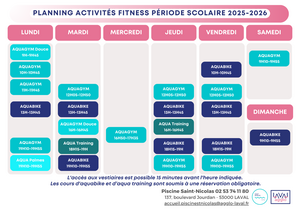 Planning des activités fitness en période scolaire à partir du 1er septembre 2025