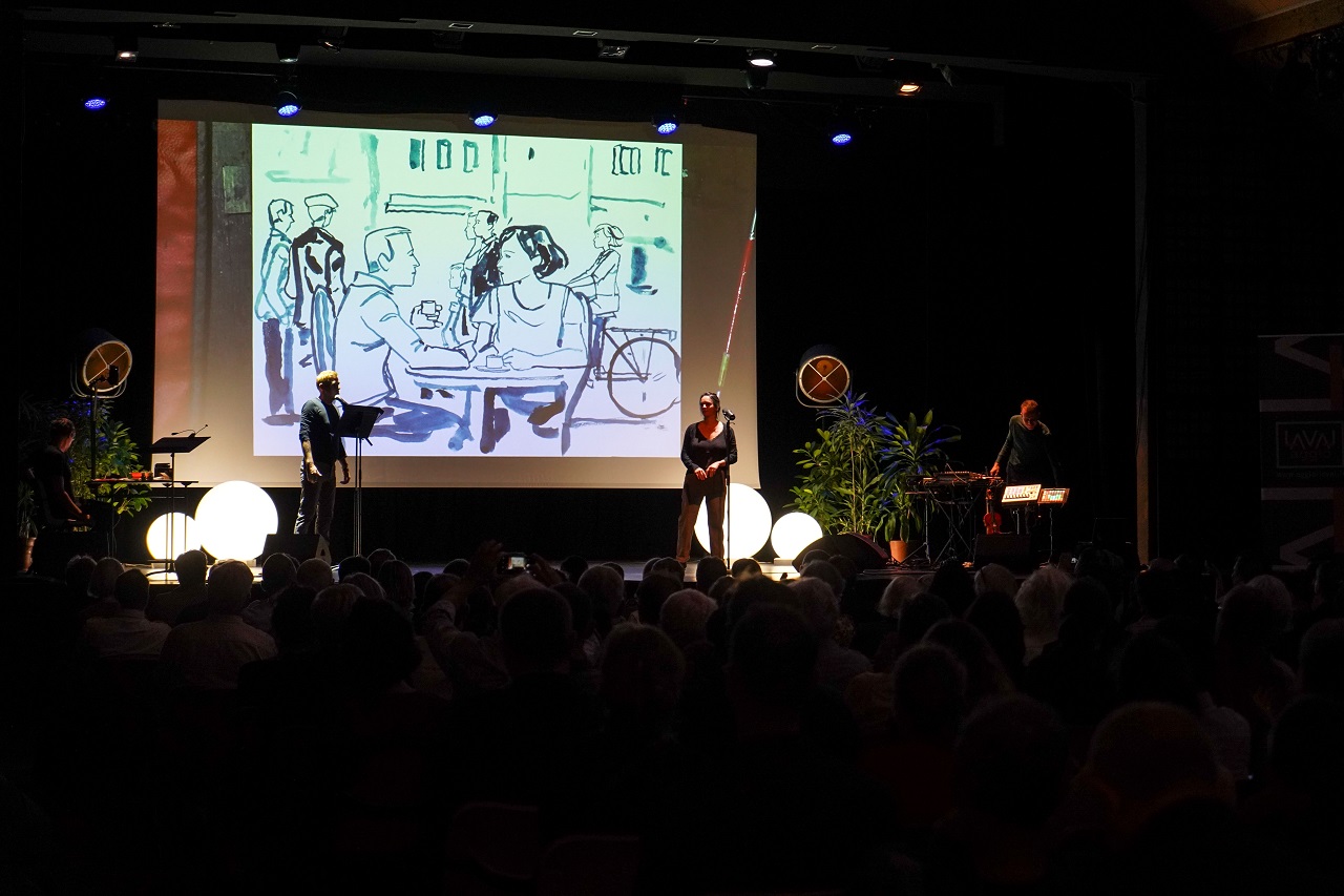 Trois artistes (une conteuse, un dessinateur et un musicien) ont dressé librement le portrait sensible de Laval et de son agglomération sur la base du diagnostic réalisé pendant près d'1 an.