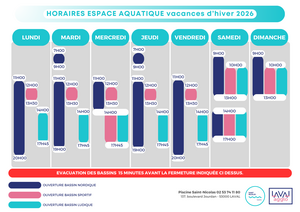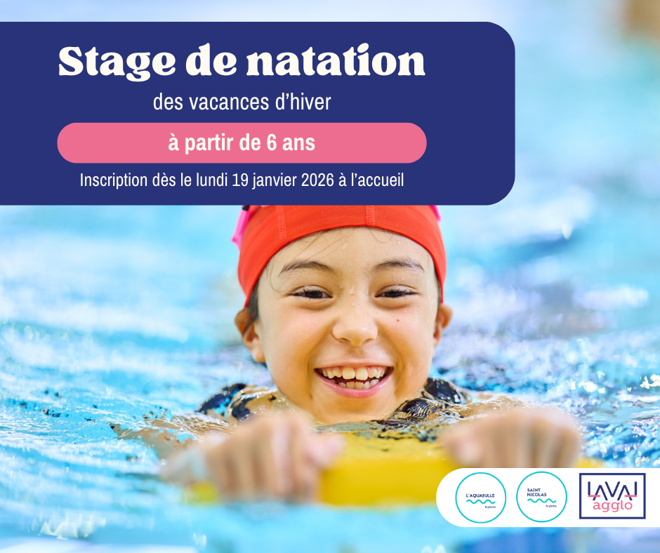 Les inscriptions au stage de natation pour les enfants pendant les vacances d'hiver commencent à partir du lundi 19 janvier à l'accueil de notre centre aquatique.