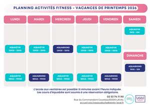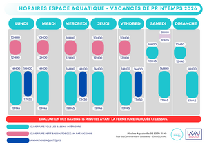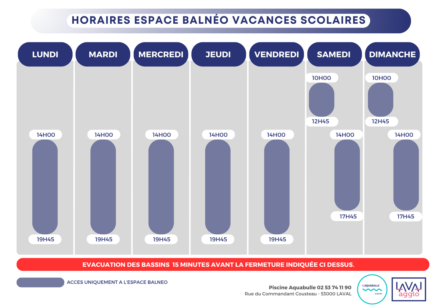 Les horaires de l'espace Balnéo pendant les vacances de printemps :