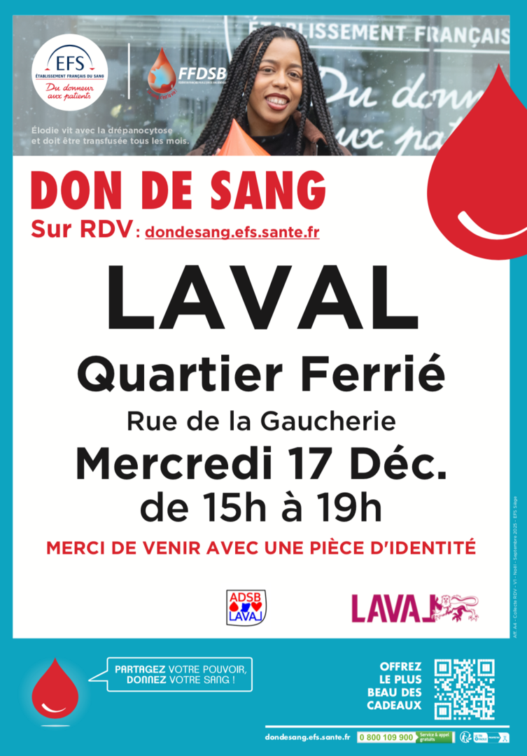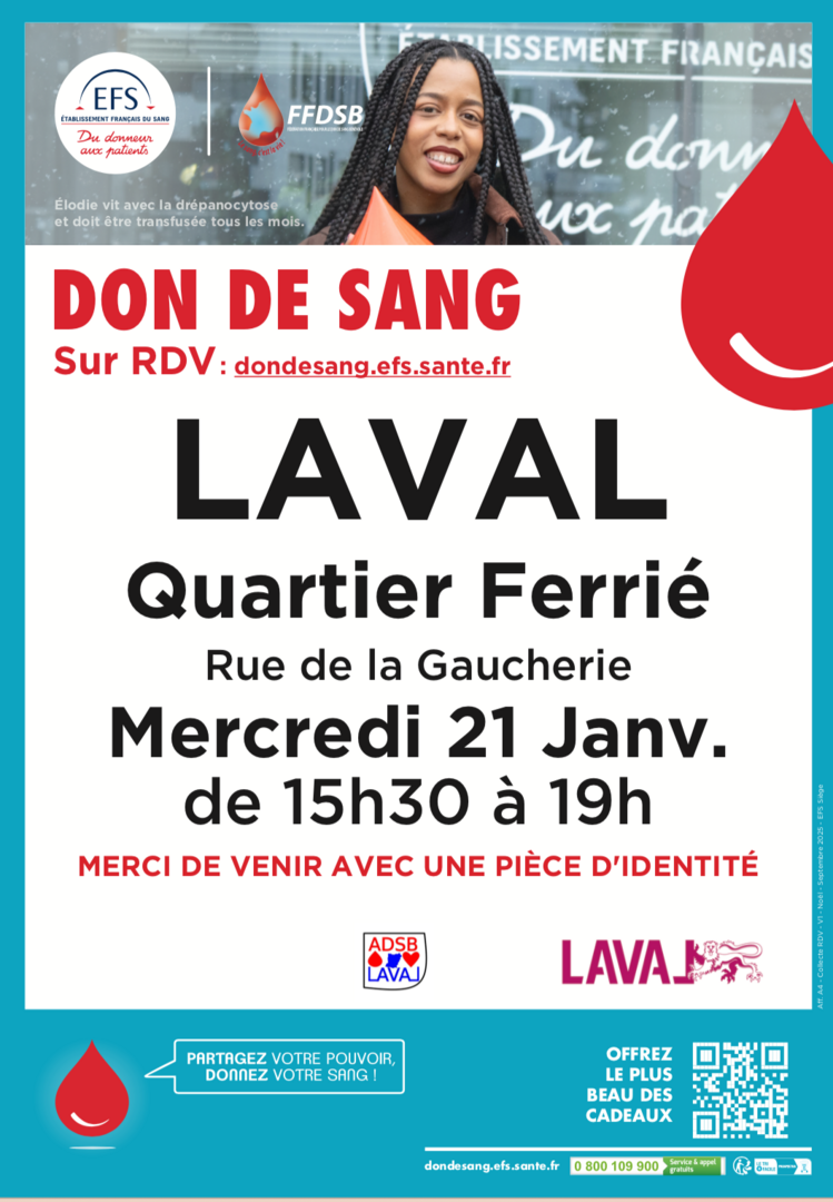 À Laval, l’Établissement français du sang (EFS) organise deux collectes importantes dans le quartier Ferrié (rue de la Gaucherie) :