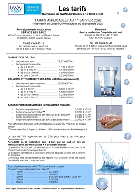 Saint Germain le Fouilloux Saint-Germain-le-Fouilloux 2 Documents - Publié le lundi 20 mars 2017 Tarifs 2026 Saint-Germain-le-Fouilloux (393Ko) Télécharger Tarifs 2026 Saint-Germain-le-Fouilloux Divisionnaire (394Ko) Télécharger PrécédentRetour à la listeSuivant